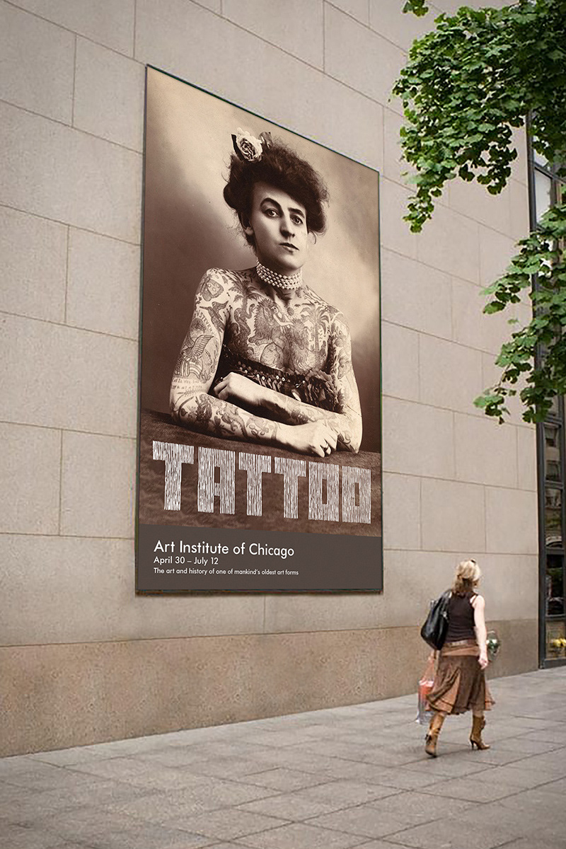 The Art Institute of Chicago was putting together a new art exhibit that celebrated the history, culture and many artistic styles of tattoos. The chosen typography is bold and works well for a variety of marketing materials.